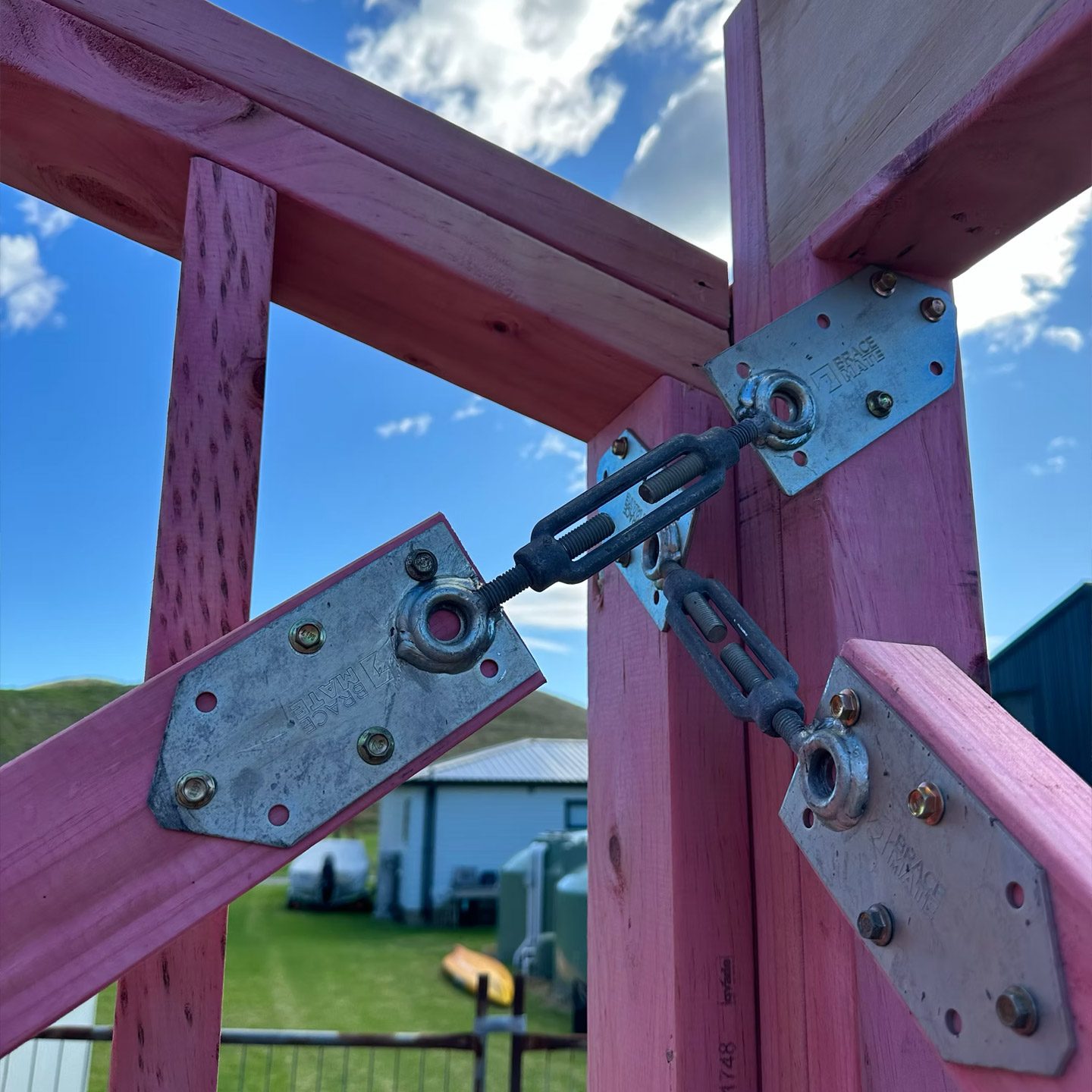 “Playing around with the BraceMates for a couple of months now and I am finding endless uses for them. Essentially, a big fan of making old 2-person tasks simplified to a single person task like wall straightening/ plumbing and bracing etc. I’ve also used these on some old re-purposed rimu window frames pulling them square, getting things like long floor joists parallel while setting up nog lines and then the general bracing piles ready for concrete. I think they are a huge productivity booster and a well thought out tool with many uses. Highly recommend BraceMate and look forward to using them for several future projects.”